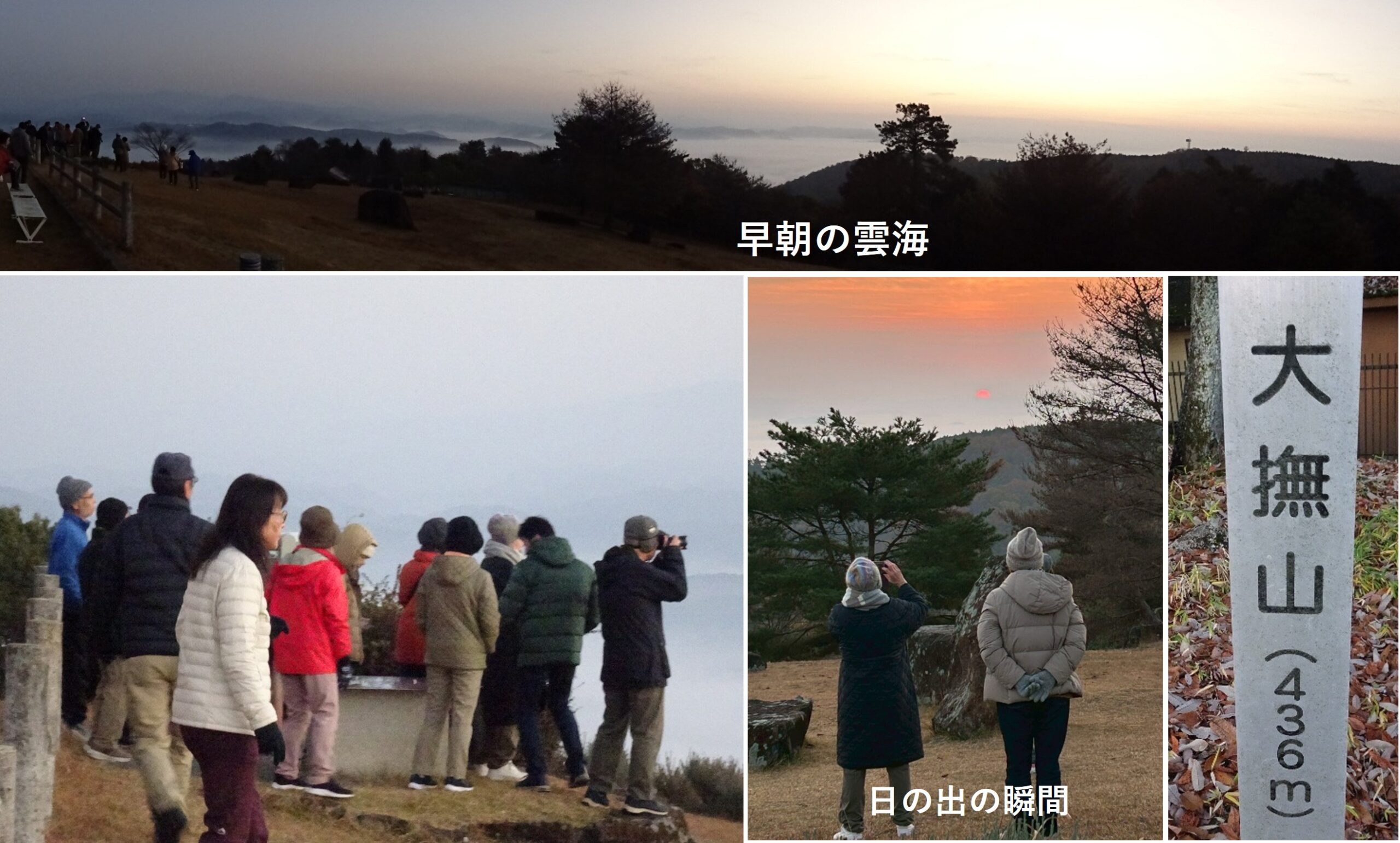 2日目は早朝から頑張って山側に行き、日の出と雲海を待ちます。昨夜に続き、天候がよく素晴らしい雲海が広がり、そして、雲海の向こうからうっすら太陽が昇り赤い日の出も見ることができました。朝から感動!幸せな気分になりました。