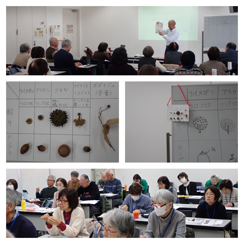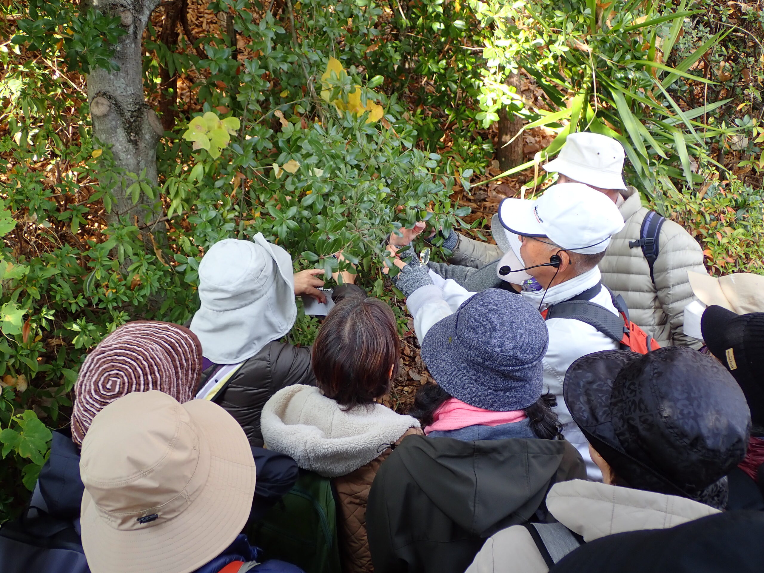 昼からの野外講座では講義に出てきたドングリや、それ以外のネズミモチ、ミミズバイ、エノキ、カゴノキ、キリ、ボダイジュ、などの木々の特徴を確認したりイヌマキの実を食べてみたり、赤ちゃんドングリ探したりして初冬の自然を楽しんだ1日でした。(T・O)