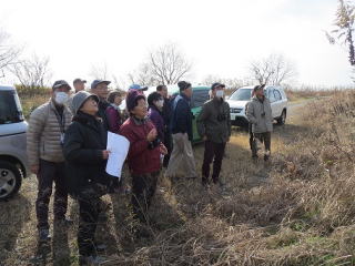 午前中の座学で堺第7-3区の概要、展示室見学、共生の森づくりの活動、共生の森の生物について講義を受け、午後は乗用車5台に分乗して共生の森を見学。春を思わせるような最高の天気にも恵まれ、スタート直後に電柱にとまっているミサゴを全員が観察した。その後もチュウヒ、ノスリ、チョウゲンボウ、オオタカ、フクロウまで出現しタヌキも2度姿をみせてくれた。