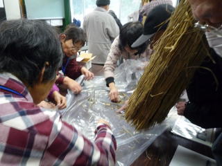 午前は座学。江戸時代から大名庭園のマツカレハの幼虫の駆除対策として行われてきたコモ巻きであるが、害虫を駆除してくれるクモやテントウムシ等も一緒に駆除されてしまうのは逆効果であると、最近あまり行われなくなっているという。今でもコモ巻きを見かけるが冬の風物詩として残されている場合も多いらしい。