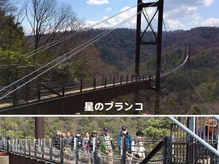 上:ほしだ園地名所、星のブランコ。全長280m高さ50m