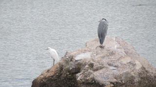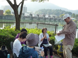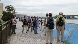 甲子園駅から講座をスタートして、定番のスズメ、カラス、ハトなどを観察しながら鳴尾浜公園へ、遊歩道に出ると上空を飛んでいる数羽のツバメを確認。海の方に目をやると海面のあちこちでジャンプしているボラと、海面に浮かんでいるブイそれぞれに1羽づつとまっているアジサシを観察できた。鳴尾川河口付近の岩場や波けしブロックにアオサギ、ダイサギ、カワウが多く観られ、砂浜にはカルガモに交じって気の早い冬鳥のカモ類を多く観察できた。
