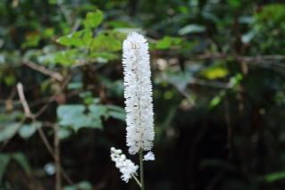 柄の先についた小さな花が集まっているサラシナショウマ。柄がなければイヌショウマ