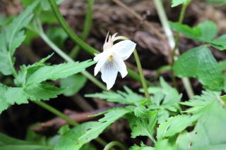 先生から「これ何の葉?」と問われ、誰も答えられずよく観たら別の株に咲いていた季節外れのエイザンスミレ