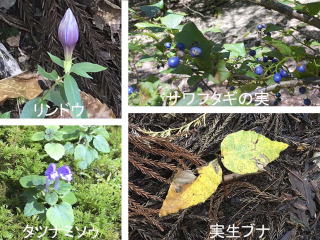 9月の長雨、10月の高温のためか、虫の発生が多いらしく葉がほとんど喰いつくされた樹木の葉や草花が目立つ中、秋の花々は終わりに近づいて、ミカエリソウ、サラシナショウマ、アケボノソウの花は何とか残っていて観ることができ、他にはキク科の花が多く観られた。また、コウライテンナンショウやハダカホオズキ、ツルシキミ等の赤い果実も多く、我々の目を楽しませてくれた。