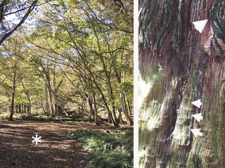 集合場所に集まった我々をヘリコプターが出迎えてくれた。対岸の中腹から五條林道の広場に材木を吊り下げて運んでいるのだ。その運搬作業を横目に講座をスタート。