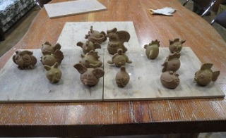 館長が焼いてくれた手作りピザの昼食後は、本日のメインイベントの土鈴作り。この時ばかりは先生の説明を熱心に聞き、工夫を重ねて意欲的に粘土との格闘を楽しんだ。