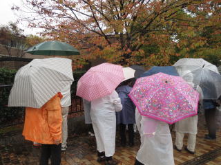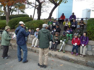 天気予報では午後からは雨。本来の寒さが戻ってきたこの日大阪城公園で10期生にとって初めての野鳥観察。