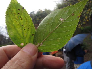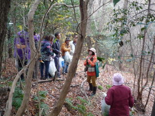 今日は特別に採取の許可を戴き、各人思い思いのものを有難く頂戴した。途中、野鳥の鳴き声も耳に止まる。その鳴き声から多くの野鳥の存在も教えられた。先生から秘密の話があるんですよと・・・実はふれあいの森にここ3年フクロウが繁殖している。そっと見守ってやってほしい、と。