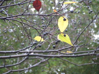 先ずは手慣らしに「どんぐりカモ」にトライ。ふれあいの森産のシリブカガシを使って、カモに似せたものを作る。結構可愛いらしく仕上がるから楽しい。つぎは、自然の素材集めに園内散策。赤い木の実が目立つ中、青や紫、黒い実も散見、リースに彩りを添えるのにいい。リースには定番の烏瓜もちゃんと我々を待っていてくれた。