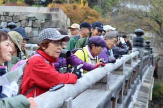 森ノ宮大阪城公園入口からスタート、市民の森~外堀~豊国神社裏(昼食)~天守東側~極楽橋~大阪城公園駅のコース。外国人観光客でいっぱいの大阪城公園。野鳥観察している我々を興味深そうに見る若い女性達に望遠鏡をのぞかせてあげた。言葉は通じなくても野鳥観察の楽しさは通じ合う。