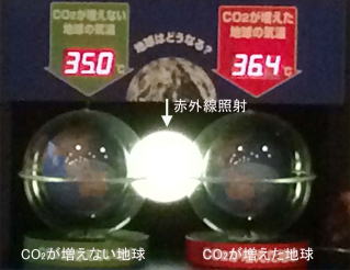 どうなる?地球の温暖化実験。太陽熱の大部分がCO2など温室効果ガスによって地上に戻され温度が上昇