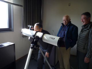 次に望遠鏡について。つい倍率のことに思いがいくが、重要なのは光を出来るだけ多く取り込めるレンズ、すなわちレンズ径が大きいこと。そして実際に反射式望遠鏡をのぞいてみた。像は上下逆さに映るが宇宙には上下もない。