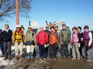 午前10時の撮影時間に集まる登山客の中に前泊組のカレッジ生も