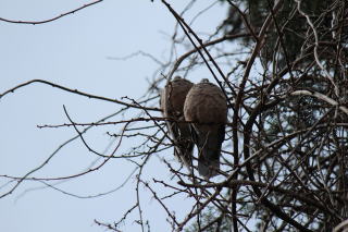 キジバトのツーショット、大きなおなかを真下から間近で