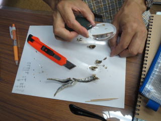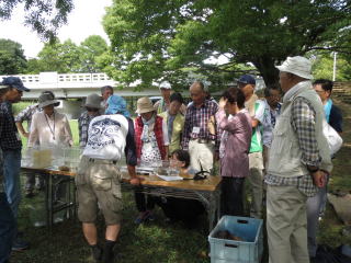 前週は台風のため、講座中止。今週こそは良い天気でありますように!!願いも空しく雨。雨でびしょびしょ、汗でびしょびじょ(美女??)。しかし我らシニア軍団、雨にも負けず果敢に湿原での生物観察に挑みました。