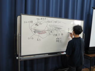 丸山湿原群保全の会代表、岸先生より湿原の成り立ち、保全活動について聞く