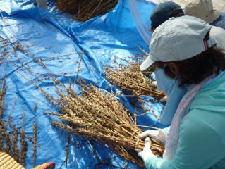 金ゴマの脱穀、一粒たりとも残さずに・・・