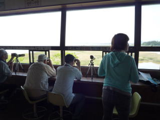 午後は展望塔内で鳥類の学習や双眼鏡の使い方から野鳥観察実習。また蜃気楼も見ることができた。限られた時間の中で盛りだくさんのことを学んだ。この野鳥園・干潟には自分(人間)以外の生き物がたくさんいる。相手の身になって生き物を見つめてほしい、と冒頭に先生が言われた言葉が印象的であった。