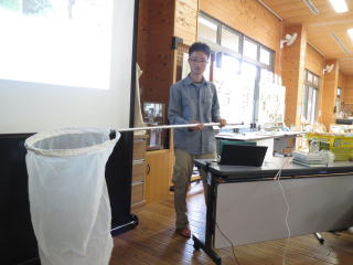 ふれあいの森は里山入門に続いて今回が2回目。午前中は室内で生物の歴史、生物の多様性、昆虫の形態や分類。また、生き物多様性の3つの危機プラス1、つまり、開発・乱獲、人間活動の縮小、外来種+気候温暖化等について講義と、昆虫採集の方法を教わり、午後は採取網を持って野外での昆虫採集。