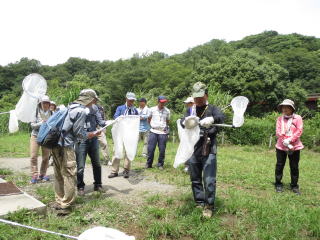 梅雨空が続き心配された空模様も10期生の晴れ女、晴れ男のパワーで雨雲を撃退。今日だけ?晴天に恵まれた昆虫入門講座。