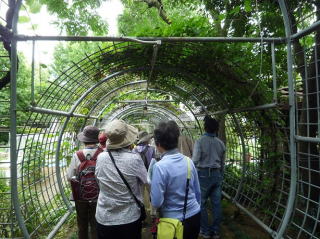 午後は予想通り雨も上がり池田先生に園内を案内頂いた。植物のエピソードを交えての楽しい話を聞きながら、時間いっぱい園内散策を満喫。こんないいところとは知らなかった。また来てみたいと多くの受講生が語っていた。