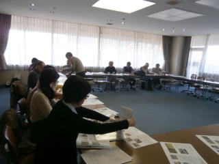 隣室には初期の埋め立てから現在までの様子や野鳥、植物、動物の写真が展示されており、受講生から埋め立ての方法や地盤沈下、汚水処理などや今後の見通しに質問が飛ぶ。森づくり活動が2004年からになったのは、2次処分地が地表面の利用しか出来ないためだった。