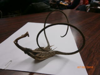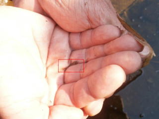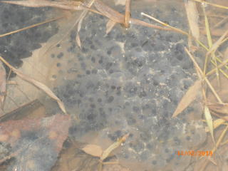 午後からは田丸先生の案内で伝説の鏡池へ、運よく「カワセミ」が水面に飛び込む姿や小魚をくわえて小枝に止まっているのが見えた。次は惣ケ池湿地へ、上空には「ミサゴ」が滑空し、「シリブカガシ」「ウバメガシ」「エノキ」、「コモウセンゴケ」「コバナノワレモコウ」等の草木、「ニホンアカガエル」の卵塊触るとプヨプヨして「アケビ」の果実みたい。卵塊1個には800個~1000個くらいの黒い直径1ミリ程度の卵があるらしい。