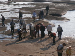 午後はバス移動後、ナショナル・トラストの地“天神崎”へ。「天神崎の自然を大切にする会」の玉井先生から自然豊かな天神崎の今とナショナル・トラスト運動の経緯を伺いました。絶滅危惧種のカスミサンショウウオの幼生、卵嚢観察後、ハマダイコン、ウバメガシ、タチツボスミレなど海岸林植物も観察しながら日和山山頂へ。360度の素晴らしい眺望は今も未来の子どもたちに残したい天神崎を物語っています。下山途中にオオキンカメムシにも出会い、天神崎岩礁で戯れ、今夜の宿泊地「かんぽの宿」に到着しました。湯船につかる私たちを柔らかく照らしながら、西の海に沈もうとする太陽が綺麗で、有意義な1日に感謝。夕食後、2年間の講座表を手に、それぞれの思い出講座を順番に仲間たちと語り合っていると、その光景が走馬灯のように頭の中を駆け巡ってきます。