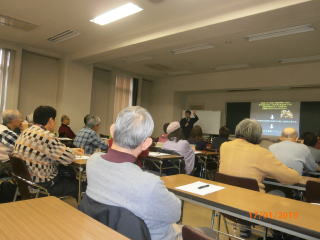 生物に体内時計あるかどうかの証明をどのようににしたのか、受講生に質問を投げかけ考えさせながらの解説。事例として、オジギソウは24時間明るさの環境を変えずに同じ条件で観察、人間は温度差のない洞窟での活動状況、アイアイ(夜行性動物)は昼夜逆転した環境での観察、ミツバチの行動は、蜜の分泌する時間を記憶等々。その体内時計の中枢は、脳の視交叉上核にあり、全身にある体内時計に指令を送って、活動や睡眠の24時間リズムを作っているということも、動物実験によって中枢を取り去り、培養してまたあらたに、移植することによって、リズムを取り戻したということで証明したとの説明。何故?どうして?どこから?疑問を細かく追及する気の遠くなる研究”すごいの一言”重吉先生のユーモアたっぷりの余談雑談を含めながらの、興味深い講座であった。