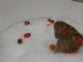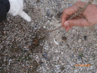 午後からは実習、コモを外す時の注意点を頭に叩き込んで最初は樹皮に隠れている生き物を樹皮を捲りながら探し出した。目が慣れたところで3班に分かれコモを手早く開き大きな袋に入れるのだが、クモの子を蹴散らすがごとく逃げ足の速い虫に悲鳴続出、これを研修室に持ち帰り各班でコモを開けピンセットなどで小さい昆虫を捕まえ資料と先生の目で同定し種類や数を書き込んでいくが、ここでも悲鳴続出先生からカメムシは別の容器に入れてくださいと指示、その強烈な匂いは身を守るためだが、容器に入れておくとその匂いで死んでしまうとの事。