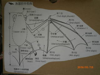 コウモリの翼は手なのだそうです。上にポチッと見えるフックが親指らしい。