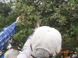 公園内でヤマモモを見つけるたびに立ち止まり手を伸ばすので、列も長く延びた。