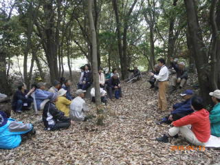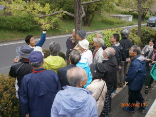 座学の後半は先生が用意してくれた数十種類の樹木の葉を、葉序や鋸歯などで分類する実習。午後からは雨も止み、西原公園で観察しながらの講義。解説してもらった樹木は三十種を越えていた。観察中にクロミノニシゴリ(黒実の錦織木)という低木についても説明して頂いたが堺で自生しているのは恐らくここだけだろうということであった。興味ある方は探しみてはどうでしょう。(ヒント:西松尾池の近くに2、3本生えています。)