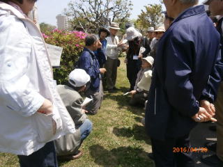 さっそくですが、タンポポの花びらは何枚あると思いますか、で講義が始まった。木村先生はタンポポ調査で知られている研究者で、つかみが巧い。タンポポのことしか話していないようでも、合弁花・離弁花、多年草・越年草、キク科・マメ科などいつの間にか植物入門の内容になっている。この他、タンポポにまつわる歴史や文学など午前中の講義はタンポポづくしであった。