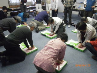 講義を終える前の先生の言葉が印象に残った。初めて心臓マッサージやAEDの使い方を教わった方が多いようです。一回の練習ではスムーズにできないかも知れませんが、体調不良の人を見たら初めに声をかける勇気と119番通報を是非お願い致します。