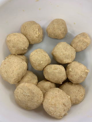 全体を十分にかき混ぜ、大豆の煮汁を足しながら、みそ玉にする。