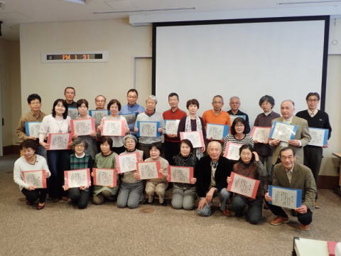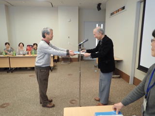 修了証書授与式では新谷代表から受講生に修了証書が手渡され、大阪シニア自然カレッジの受講生を卒業。