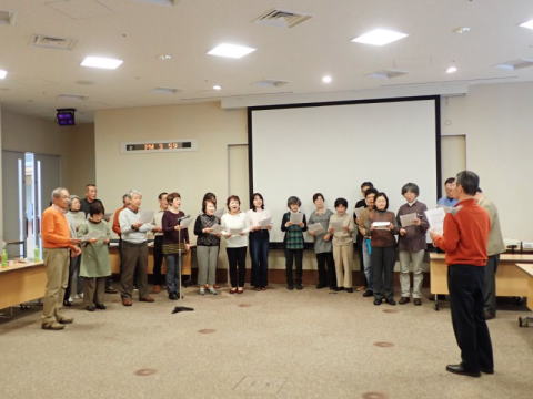 振り返りの会のフィナーレは清らかな声?で合唱!