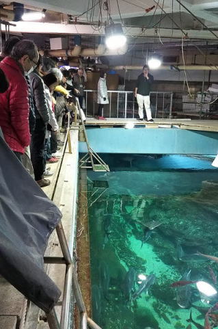 午後は水族館コーナーのバックヤードの見学。展示水槽を上から観たり、冷凍されたサメを触ったり楽しい体験をした。その後絶滅したオオカミのはく製、粘菌、魚など和歌山県の自然を紹介展示してあるコーナーを順番に見学。盛りだくさんの一日を終わった。