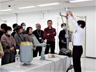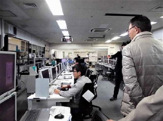 「ご存知ですか気象庁」と組織の説明から始まり「地震の知識」「天気予報と防災気象情報ができるまで」の講義を受ける。世界中の地震の約2割が日本で発生している。地震観測点は全国で4375ヶ所、大阪は88ヶ所。南海トラフ地震では揺れに加え津波の被害も予想される。自然現象を正確に把握するため気象庁が行っている観測はアメダス、気象レーダー、ラジオゾンデ、ウィンドプロファイラ、気象衛星ひまわりで、それぞれから得たデーターを解析、予測監視している。次に現業室を見学。地震火山課はモニターがずらりと並んでいるが思ったより人が少なく静か。目の前のテレビ画面は緊急地震速報が正確に出ているか確認の為との事。予報課は外向きに予報を発表するが最後の決断は経験を積んだ予報官によるそうだ。最後にアメダス装置の説明を受ける。