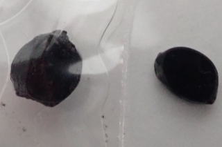 先生たちが2003年から採集しており化石が多く含まれている地層なので初めての我々でも期待できそうだ。粘土層の塊を細かく割って化石を探す。グレーの粘土に黒いものが!化石かな?始めは声が少なかったが瞬く間に「先生これは何ですか?」「これは何の化石ですか?」「ナツツバキの化石です」「イヌマンサクです」先生も鑑定に大忙しである。受講生が見つけた種子の化石はエタノールと袋に入れて持って帰るようにして頂き有難うございました。化石は数ミリの大きさですが約270万年前の時代の植物だと思うと重みを感じますね。