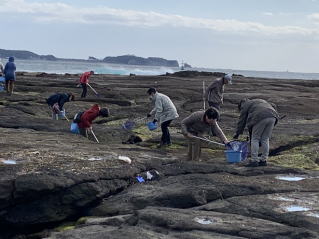 天神崎で磯の生物を採集中。ミレーの「落穂ひろい」を連想するのは私だけ?