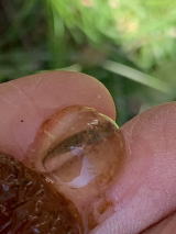 セトウチサンショウウオの卵嚢の中に孵化直前の幼生が見える。孵化後は共食いが珍しくないそうだが、何とか無事に成体に育ちますように!