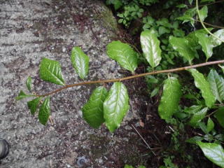 今年は例年に比べ花の時期が2週間ほど早く、いつもこの時期に咲いている花がほとんど終わっていてウツギ類が咲き始めていた。雨上がりの新緑が美しく、クリンソウ、ミヤコアオイ、オオチャルメラソウ、ネコノメソウ、日本の特産種でこの和名を付けられたヤマトグサなどが咲いていた。特徴のある葉状のコクサギ、葉を枝の左右へ交互に2枚ずつ付ける(コクサギ型葉序という)名前の由来である臭い、雌雄異株などの説明を受ける。