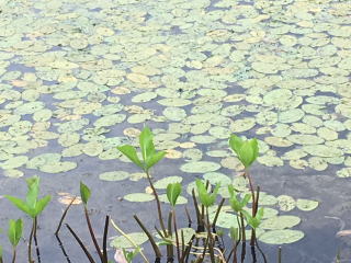 さらに大部分がジュンサイに覆われた池の周囲を巡りながら、摂り込んだ微生物の黒い粒でビッシリのタヌキモ、鹿に食われて小さくなったミツガシワ、池を取り囲むチャート岩石、ミズゴケが堆積してできた浮島等々、深泥池ならではの自然に見入る。植物だけでなくトンボも68種類を数え、大都市にありながら驚異的な生物多様性を有する希少な自然であることを知る。