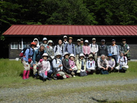 朝食前1時間ほど宿舎近辺を福本ガイドの案内で散策をする。ササユリ、コアジサイ、ウツギなどが咲いていて、岩を上っているモリアオガエルを見つける。鹿が竹の子を食べて新しい竹が育たず古い竹のみとなり芦生ではいずれ竹はなくなるだろうと話されていた。