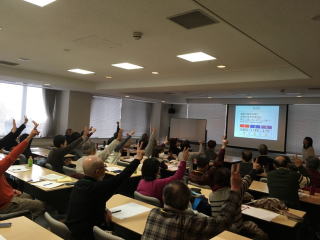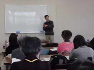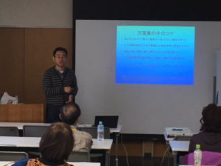 今日は奈良テレビで気象キャスターとしてご活躍中の久保先生の講座。この日の気温は最高3℃、最低-2℃で強風が吹き、まさに数年に一度の記録的寒波のため終日座学となったが、暖かい部屋でじっくりと話が聞けた。