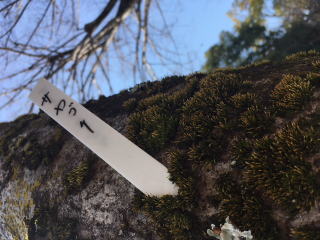 そして、A4コピー用紙で作った簡易採集袋に数種類のコケを収納し、採集地・生育基物・種名等を記入した上で、大事そうに持ち帰った。
