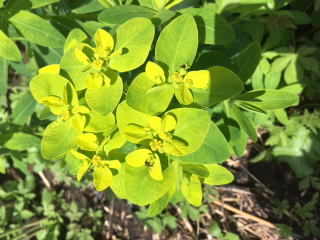 絶滅危惧Ⅱ類に指定されているノウルシ。黄色のガクに隠れるように咲く可愛い花が見えますか?